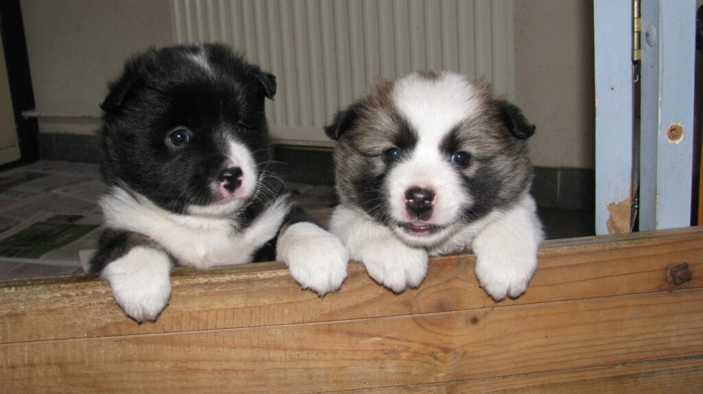Het zijn 2 teefjes, een rood met wit en een zwart met wit en bruine aftekeningen.
